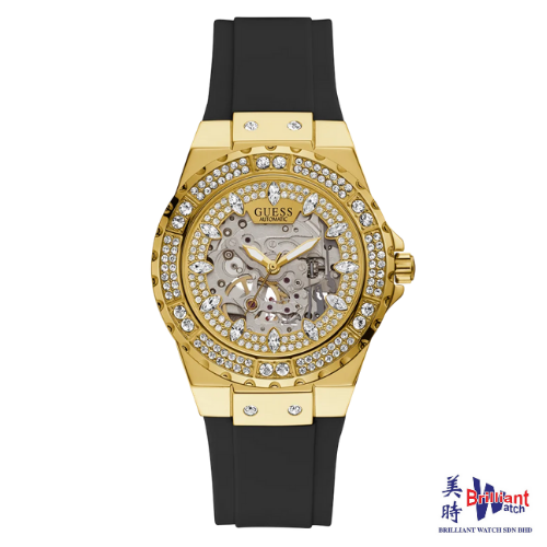 GUESS Gold Tone Case Black Silicone Women's Watch GW0040L2