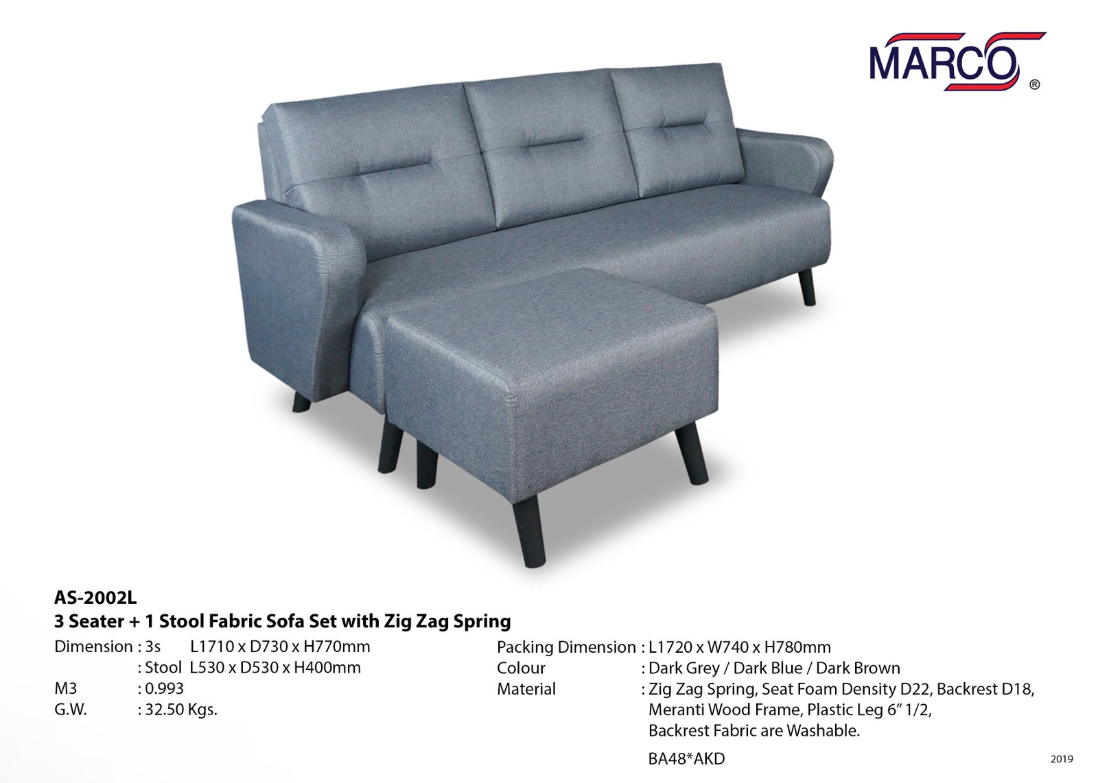 CODE No: AS-2002L-DB 3+1 STOOL FABRIC SOFA SET WITH ZIG ZAG SPRING DARK GREY